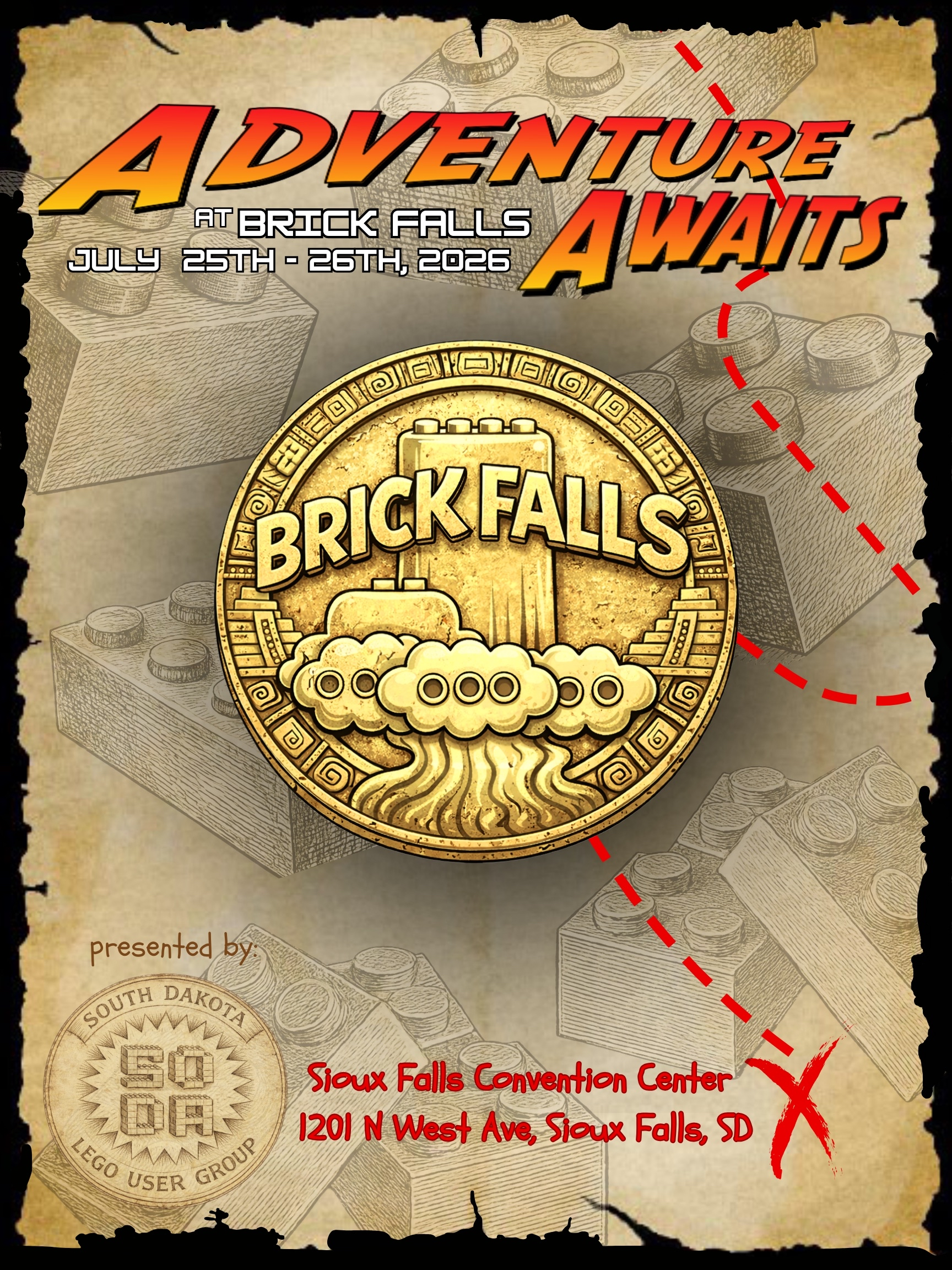 Brick Falls 2026 Saturday, July 25, 2026 10:00 AM Sunday, July 26, 2026 4:00 PM Sioux Falls Convention Center 1201 North West Avenue Sioux Falls, SD, 57104 United States (map) Google Calendar ICS IowaLUG members will be attending and displaying amazing creations at Brick Falls 2026! Come out to the show to see our LUG’s setup, as well as many other displays from LEGO fans across the Midwest.